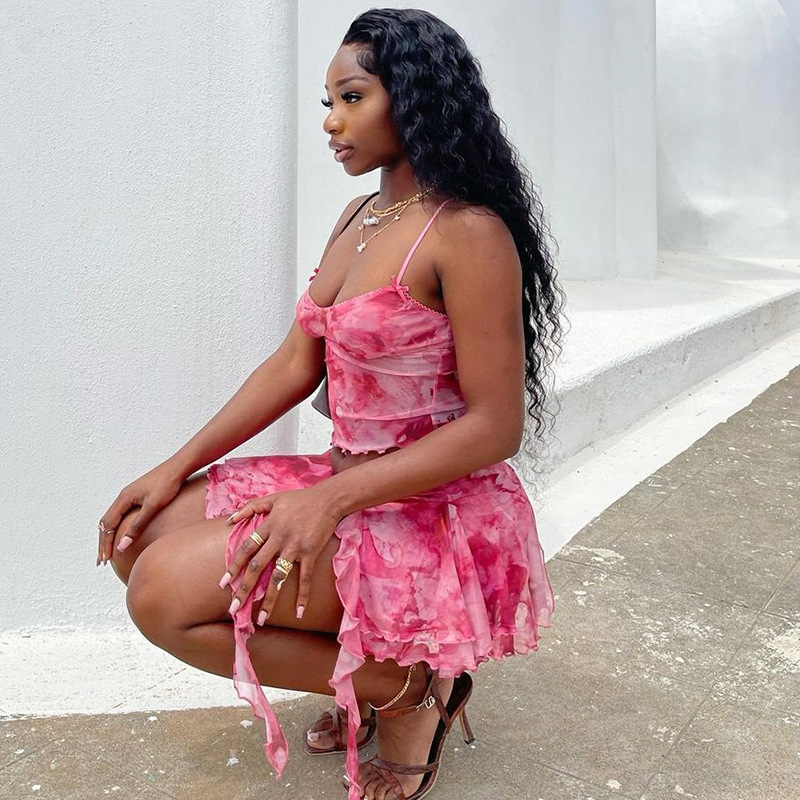 Fashion Printed Camisole Split Skirt Two-piece Suit Trendy