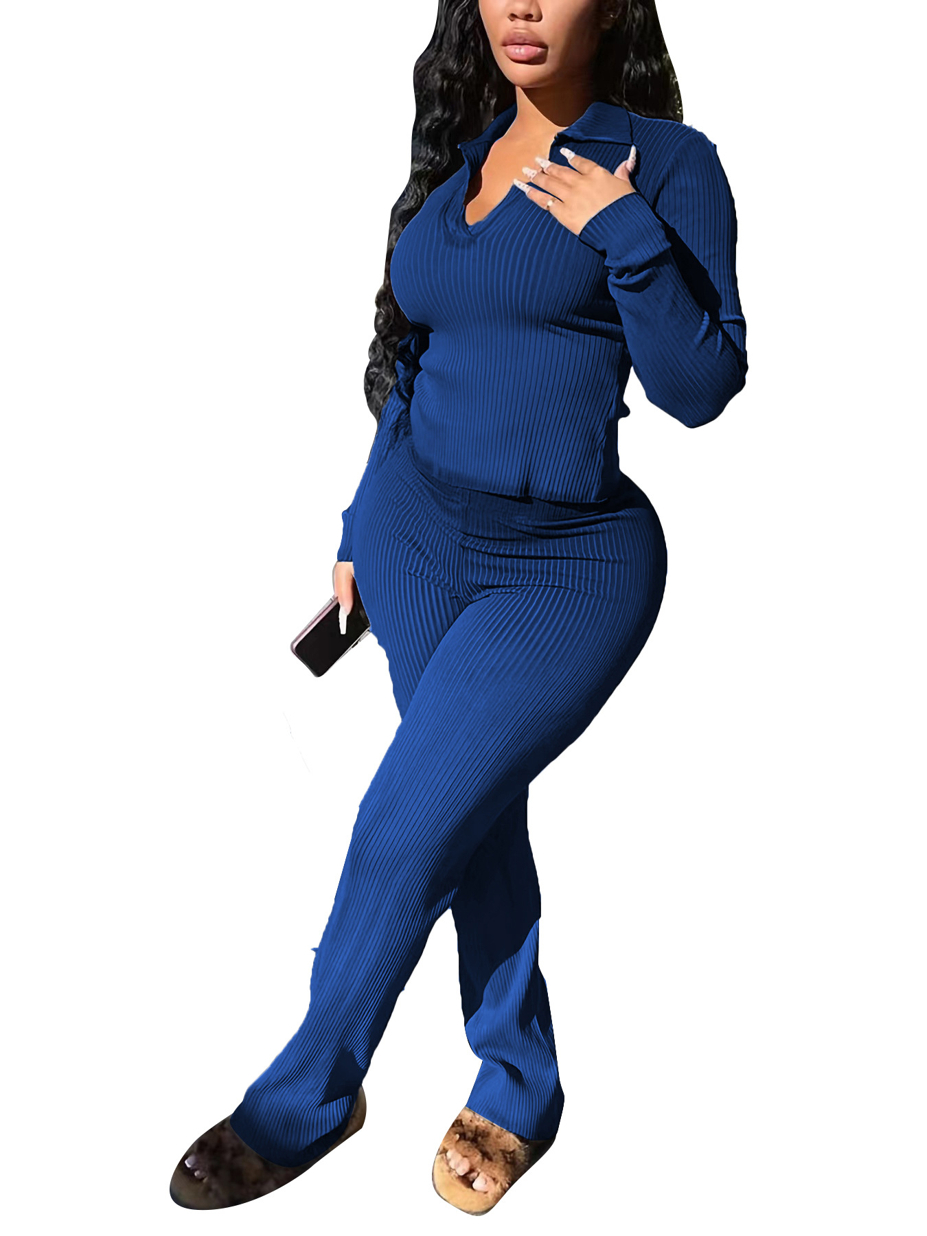 M20783 Women's Clothing Sunken Stripe Long Sleeve Temperament Commute Solid Color Two-piece Set